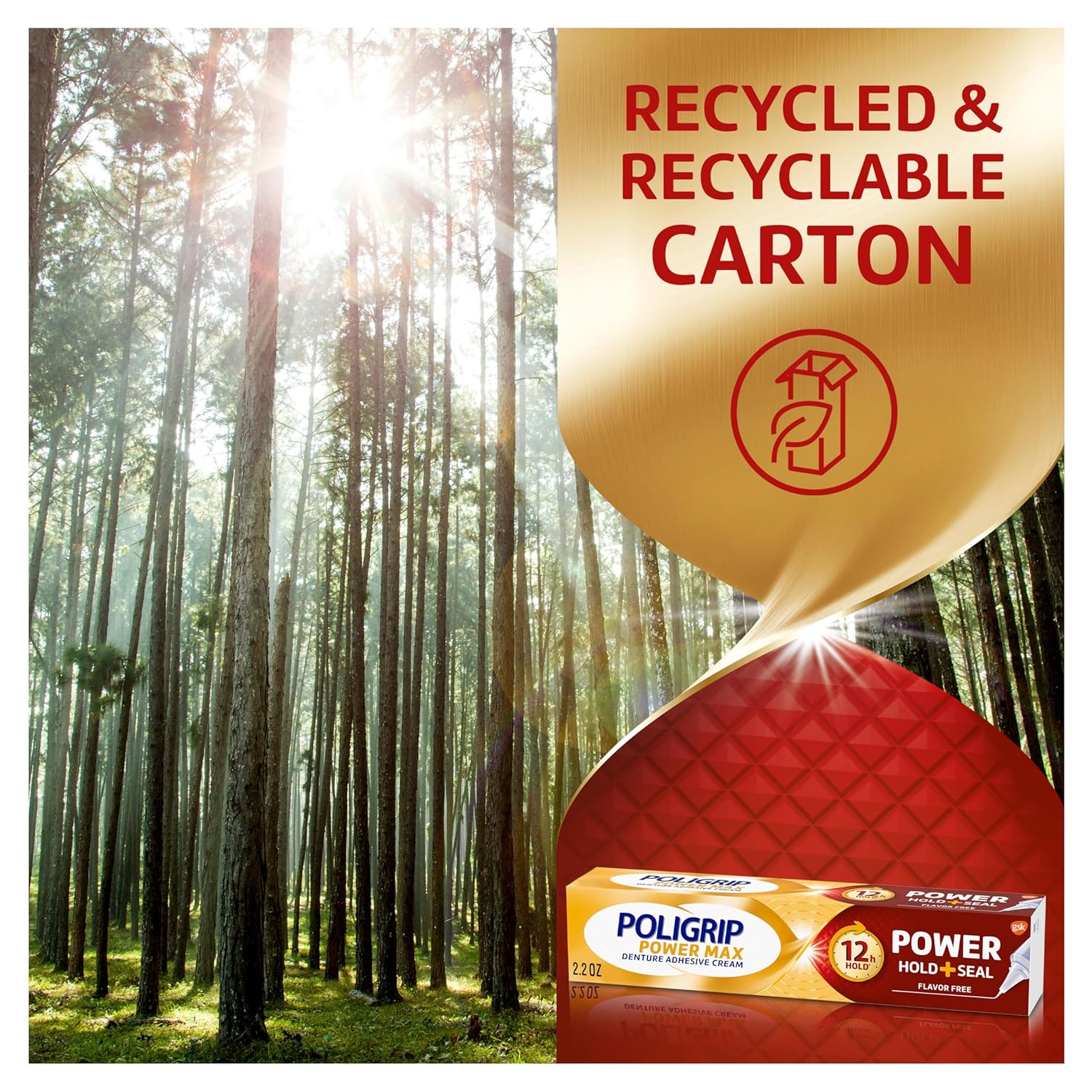 - Four pack of 2.2 oz tubes of flavor free Poligrip Power Max Power Hold pkus Seal Denture Adhesive Cream, Denture Cream for Secure Hold and Food Seal