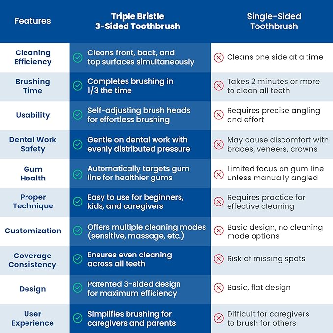 - DENTIST CREATED & DENTIST APPROVED - Our unique triple toothbrush design is revolutionizing the way we clean teeth and is recommended by Dentists across the United States.