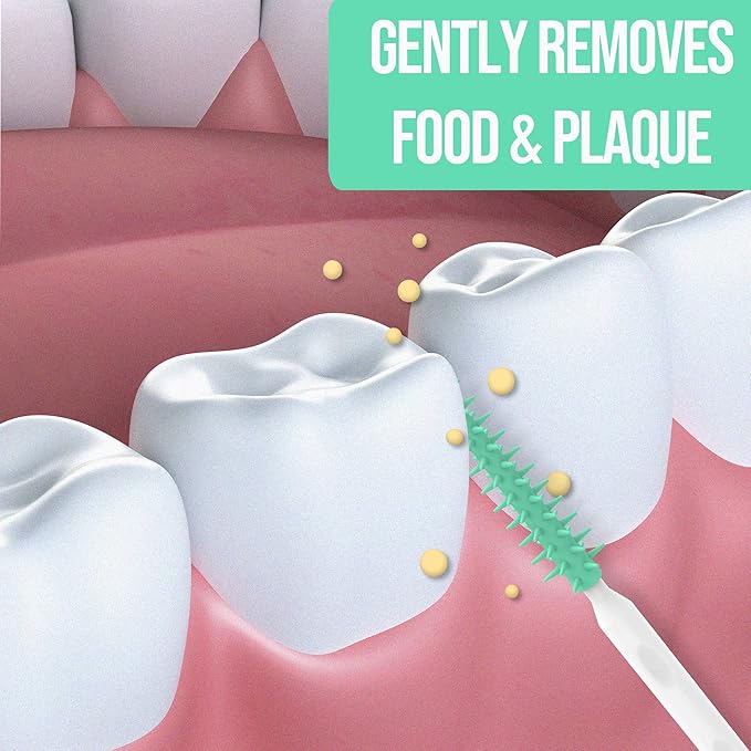 - COMFORTABLE RUBBER BRISTLES: Comfortable flexible bristles massage and stimulates gums.
