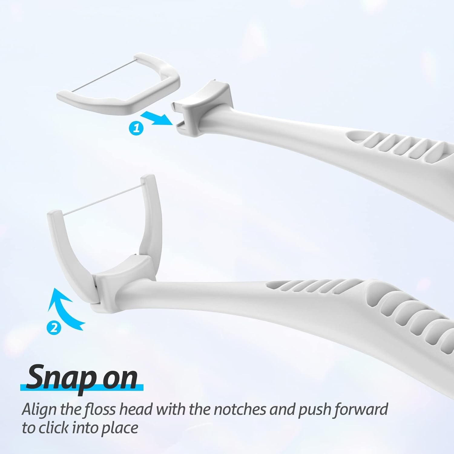 - An ergonomic handle design is included to provide comfort while cleaning, easily attach/remove the floss head. Angled at an optimal 135 degrees, the floss reaches every crevice between your teeth.