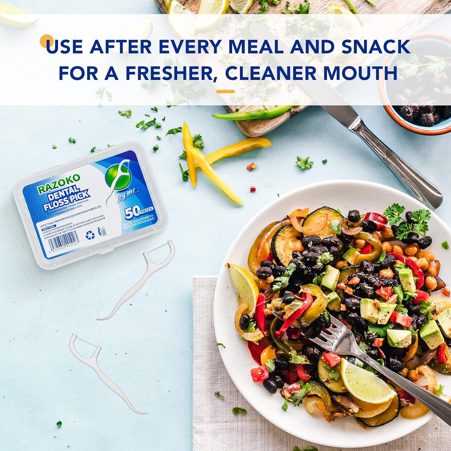 RAZOKO Dental Floss Picks High Toughness Professional Toothpicks Sticks 4-Pack(200pcs) with Portable Case and Dental Picks Perfect for Family,Hotel,Travel
