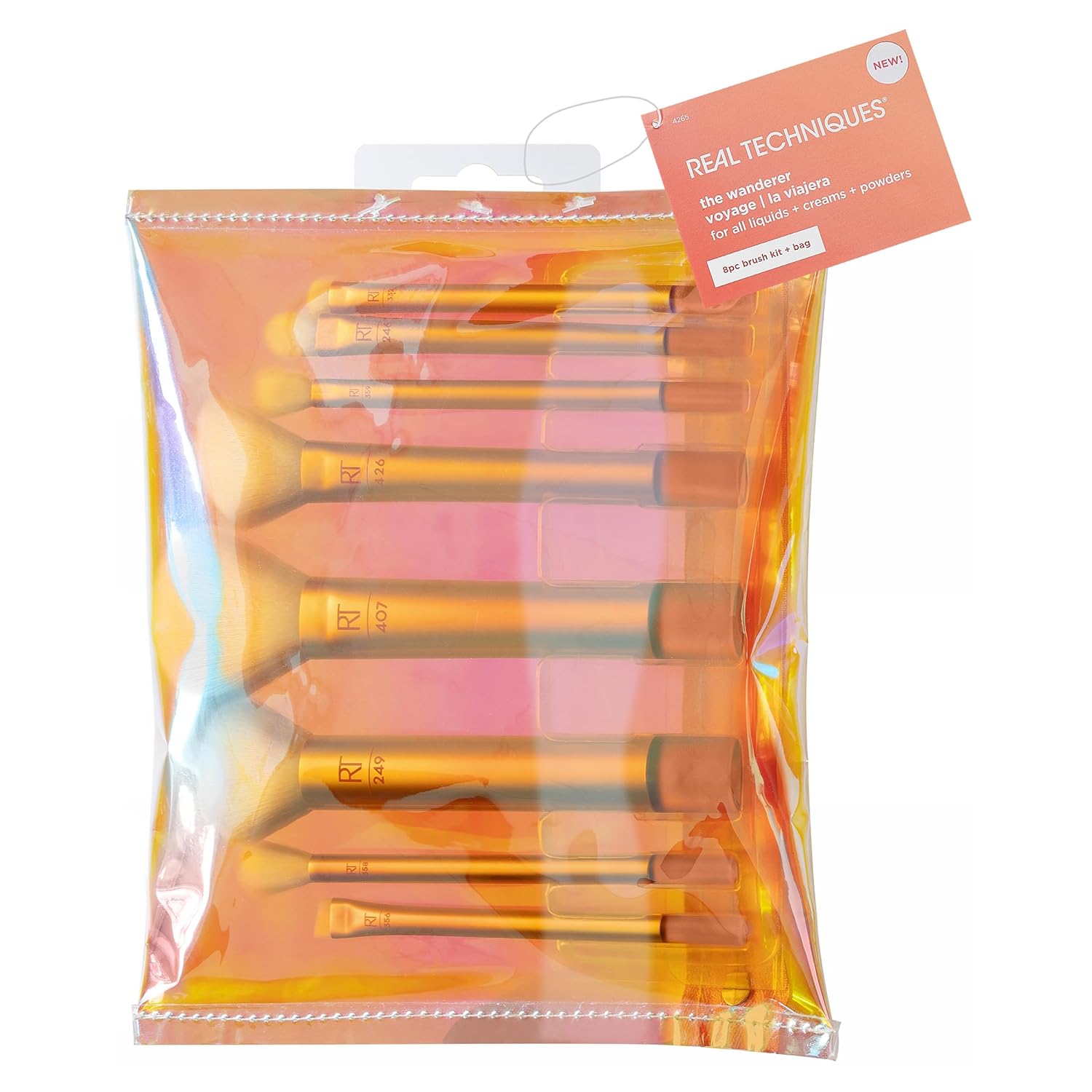 - Real Techniques Wanderer Brush Set includes: Angled Multitask Brush, Multitask Brush, Concealer Brush, Foundation Buffing Brush, Blending Shadow Brush, Tapered Shadow Brush, Angled Liner Brush, Smudge Brush, & Travel Makeup Bag
