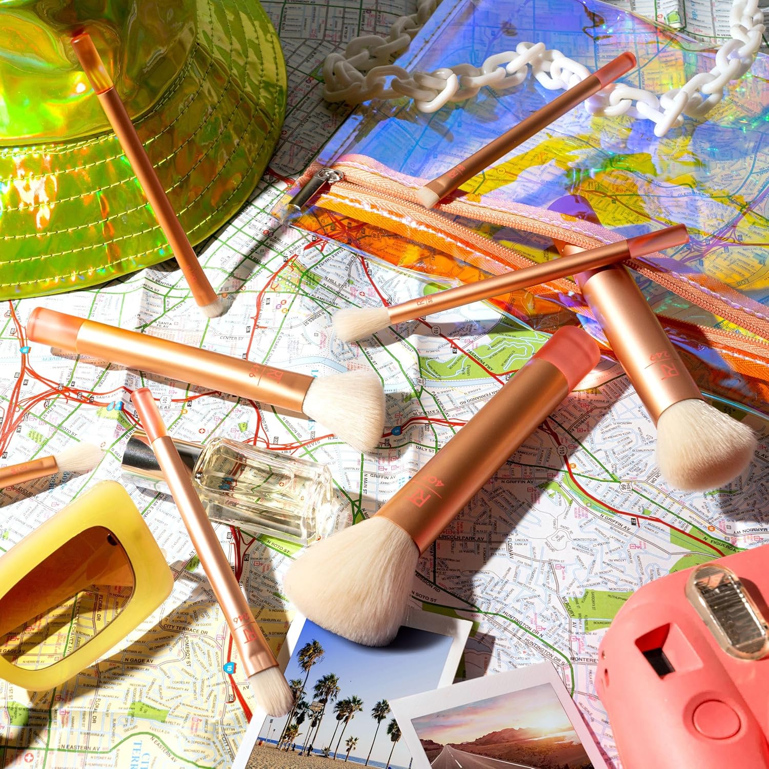 Real Techniques 9 Piece The Wanderer Makeup Brush Set, For Liquid, Cream, & Powder Eyeshadow, Foundation, Concealer, Blush, & Contour, Travel Midi-Size Brushes, Cruelty-Free, Synthetic Bristles