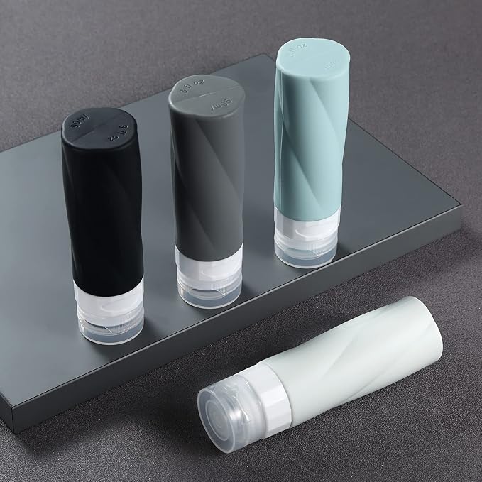 Gemice Travel Bottles for Toiletries, 3oz Tsa Approved Travel Size Containers BPA Free Leak Proof Travel Tubes Refillable Liquid Travel Accessories with Clear Toiletry Bag (4 Pack)