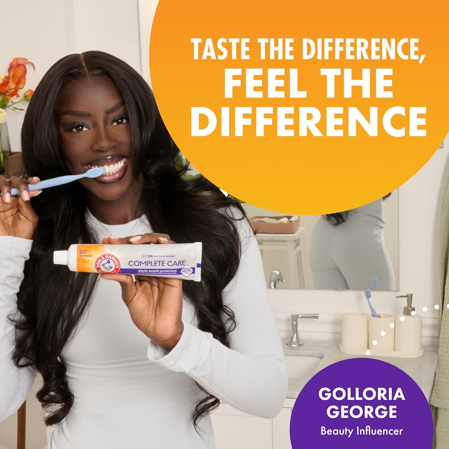 ARM & HAMMER Complete Care Toothpaste, Teeth Whitening Toothpaste with Baking Soda, Fluoride, Whole Mouth Protection, Fresh Mint Flavor, 6.0 oz (Pack of 4)