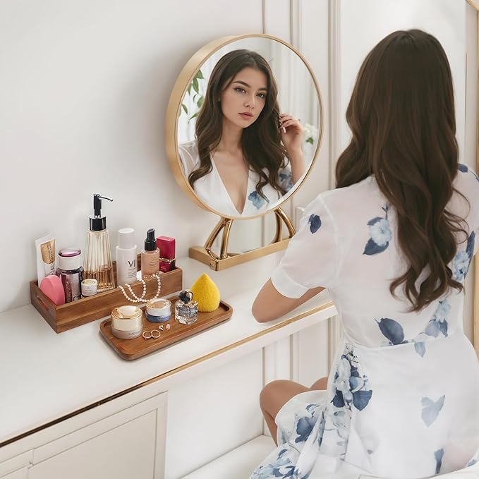 - Non-Skid Foot Pads & Raised Lip: The vanity tray and decor box come with 4 soft rubber feet on the bottom, keep your tray sitting still without being slid on wet surfaces, and also prevent scratching your countertop. Each product is 100% handmade, so the wood pattern on the tray will be slightly different from the picture, but it is a unique one.