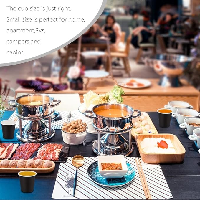 - 100 Pieces in Total:Black little paper cups can hold 3 oz. They're available in convenient packs of 100, a large number is more affordable and beautiful.3oz small Black paper cups are perfect for bathroom cup,supermarket trial cup,snack cup for birthday party and so on.