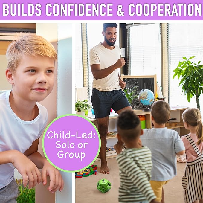 - GROSS MOTOR DEVELOPMENT: Full-body moves build kids fitness -balance, coordination, and core strength—ideal gross motor toys and preschool gross motor toys indoor; the soft dice with activities gross motor format supports preschool movement while keeping kids active without screens.
