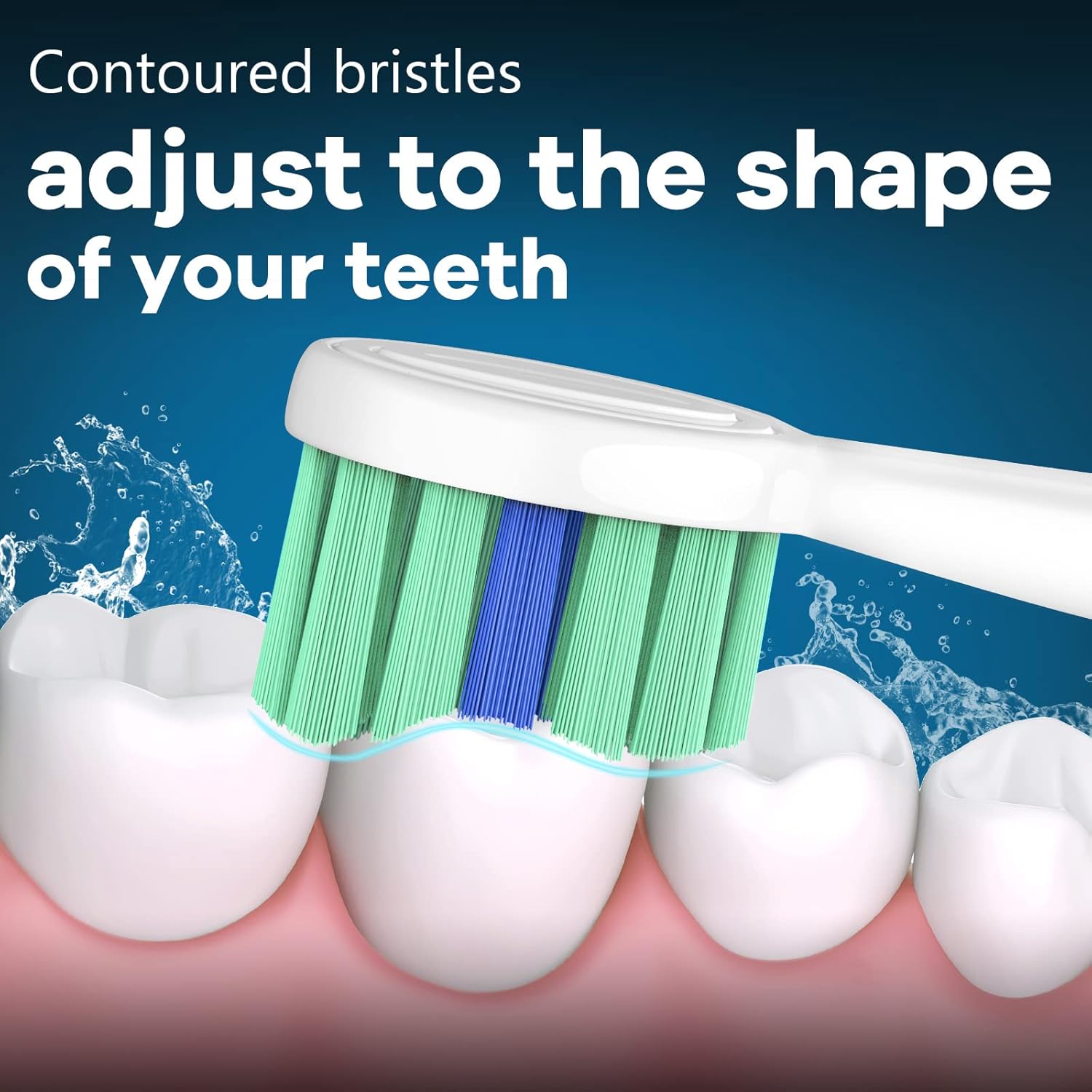 - 【Effective Plaque Removal and Minimizes Gingivitis】High-quality bristles remove up to 7x more plaque than a manual toothbrush. The top contoured bristles on our electric toothbrush heads fit naturally to the shape of your teeth. And the specially curved power tip makes brushing hard-to-reach areas easier than ever.