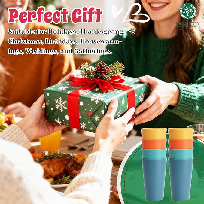 Homienly Wheat Straw Cups Small Plastic Cups Set of 8 Unbreakable Drinking Cup for Kids Reusable Dishwasher Safe Water Glasses Unbreakable Cup for Kitchen, Party, Outdoor (8 OZ, Small Size)