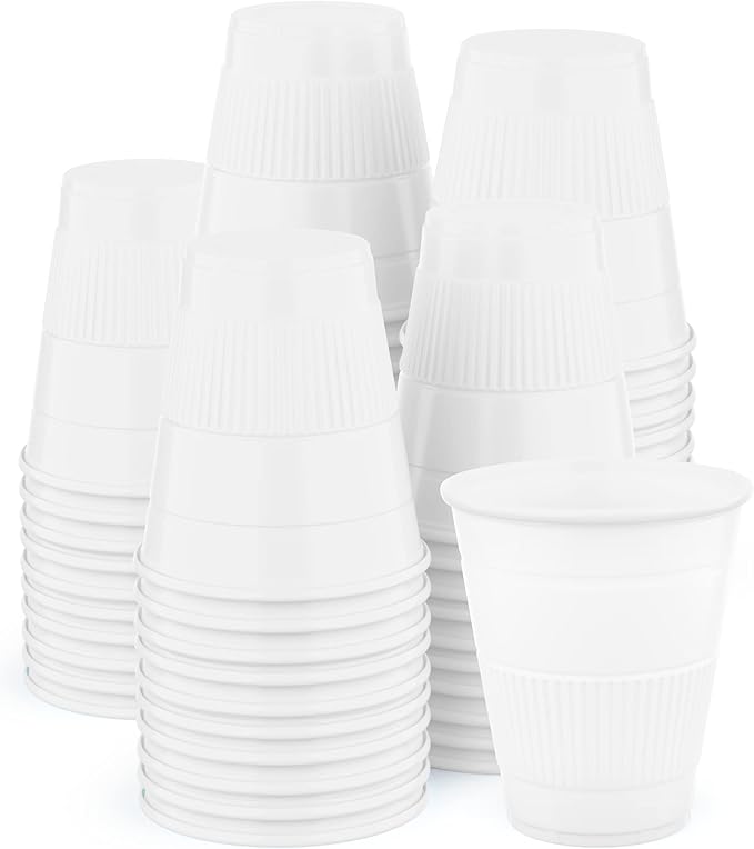 5 oz Plastic Disposable Cups, 50 Pack, White, Multi-Use Mini Cups for Bathroom, Medicine, Rinsing, Mouthwash, Party, Dental, Kids