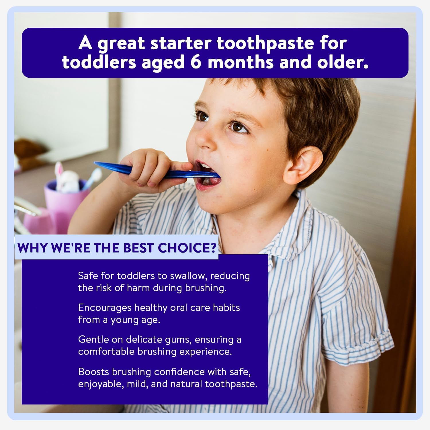 - Fluoride-free and safe to swallow, ideal for young children learning to brush.