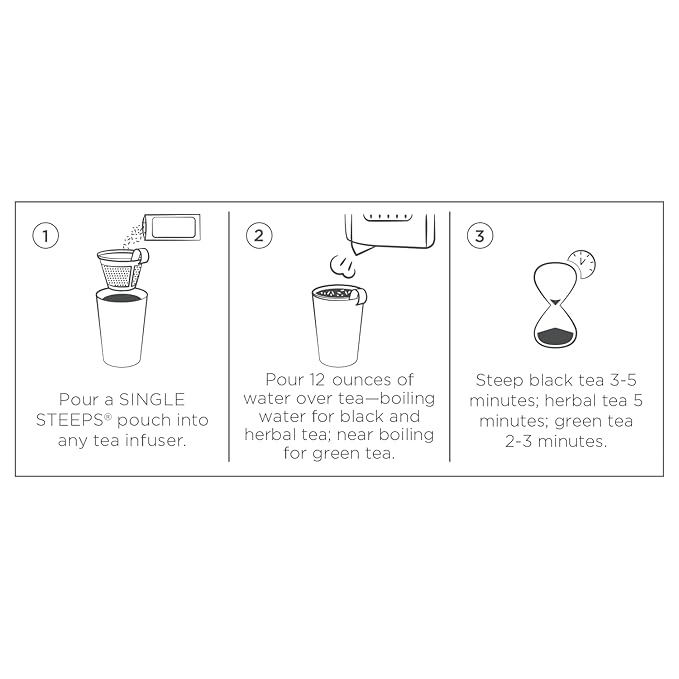 - STEEP THE PERFECT CUP of hot tea: Place tea leaves in tea infuser or strainer and pour water over the leaves. Steep for 5-7 minutes. Enjoy!