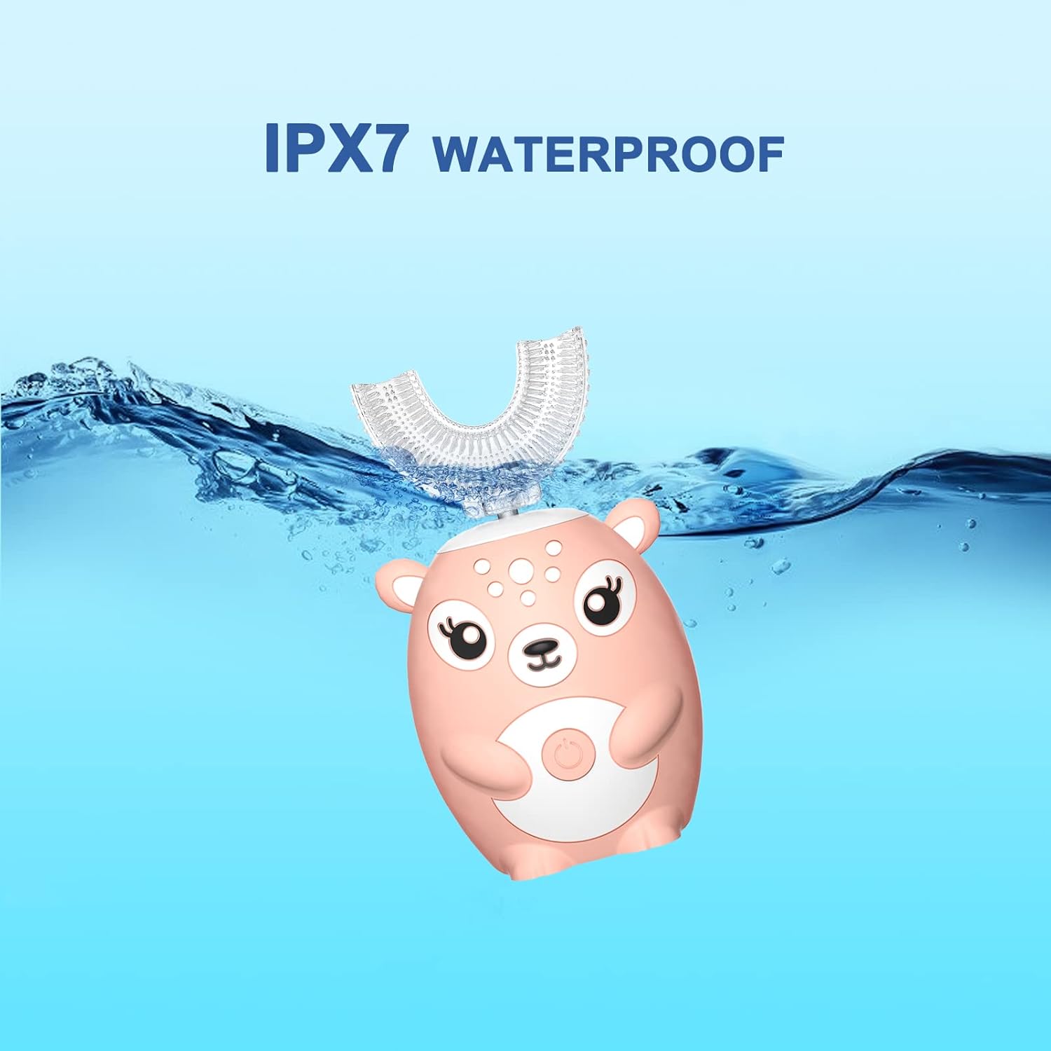 - WHAT YOU GET : Kids electric toothbrush body, 2 U-shape brush head, 2 soft brush heads, USB cable, Dustproof Gargle cup(toothbrush cover), User manual