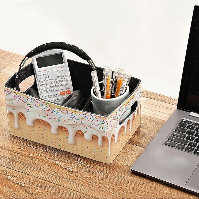 Kcldeci Ice Cream Cone Food Sweet Storage Bins Baskets for Organizing 2Pack, Sturdy Storage Basket Foldable Storage Baskets for Shelves Closet Nursery Toy