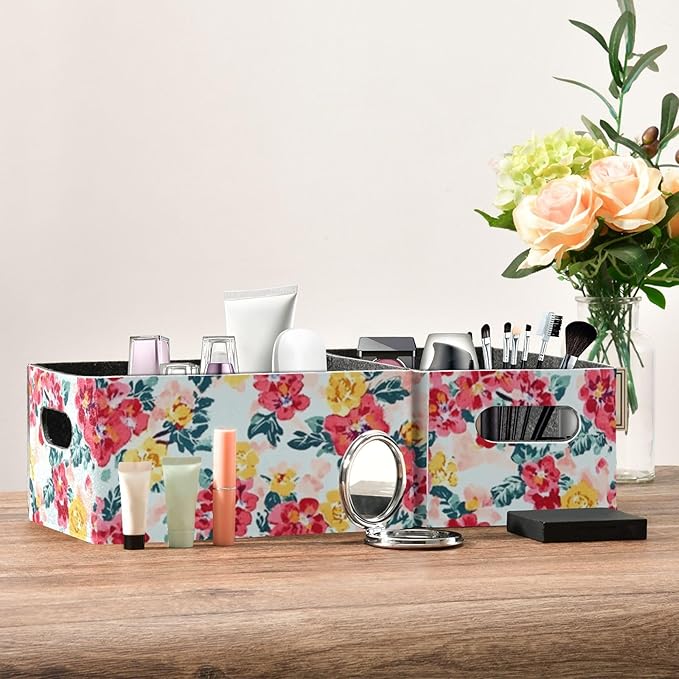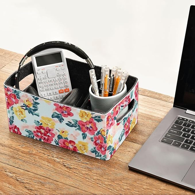Kcldeci Rose Floral Flower Green Leaf Storage Bins Baskets for Organizing 2Pack, Sturdy Storage Basket Foldable Storage Baskets for Shelves Closet Nursery Toy