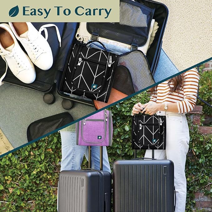 - PADDED MAKE UP BAG CASE: The toiletry case bag for men has foam padding that protects toiletries container, shampoo bottle during flying, roadtrip, and plane. The toiletry bag kit also has elastic bands that secure makeup brush, face spray, lipstick, shaving razors. One waterproof compartment for wet toiletries. This large hanging toiletry bag holder for women will protect all gear, cosmetics, and travel gadgets.