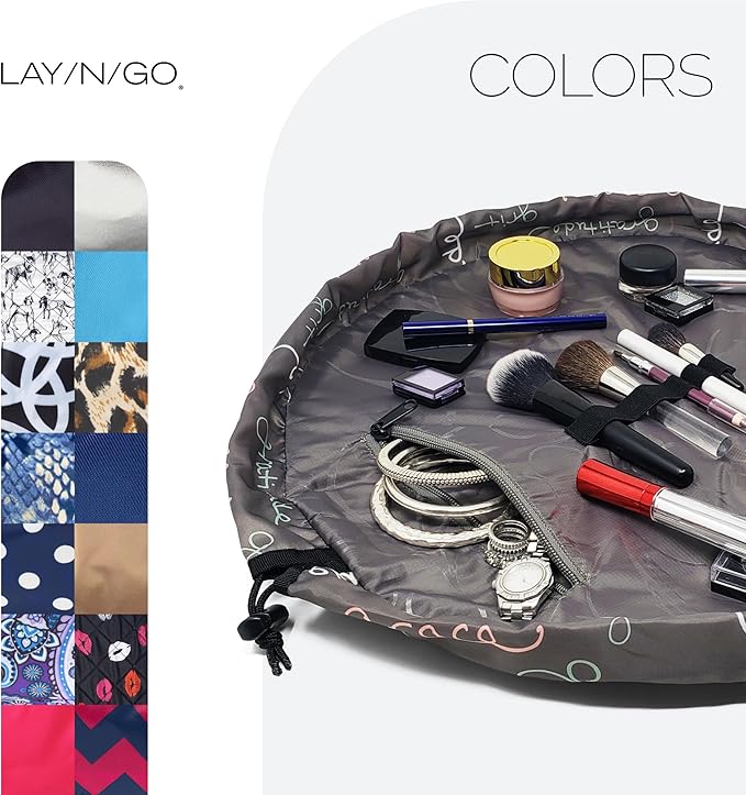 - FAST CLEANUP, NO MESS: Lay flat to instantly access all your makeup, then cinch closed for effortless cleanup – no more digging through cluttered bags or bathroom counters.