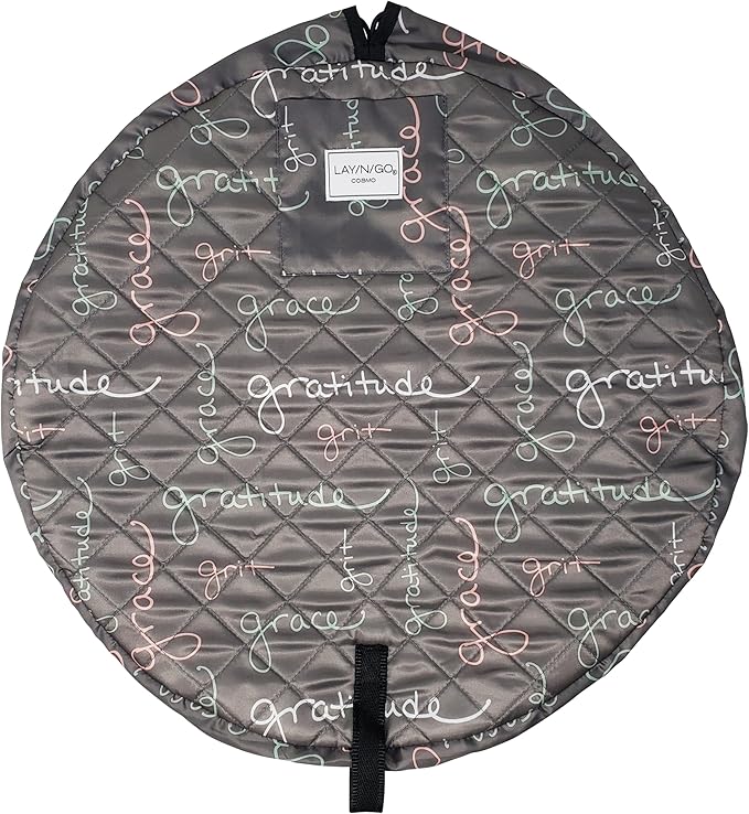 Lay-n-Go Cosmo Drawstring Cosmetic & Makeup Bag Organizer - Portable Drawstring Makeup Bag w/Zipper Pocket & More - Durable, Machine Washable Toiletry Bag for Travel (20", Grit Grace Gratitude)