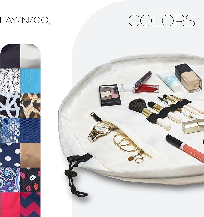 - FAST CLEANUP, NO MESS: Lay flat to instantly access all your makeup, then cinch closed for effortless cleanup – no more digging through cluttered bags or bathroom counters.