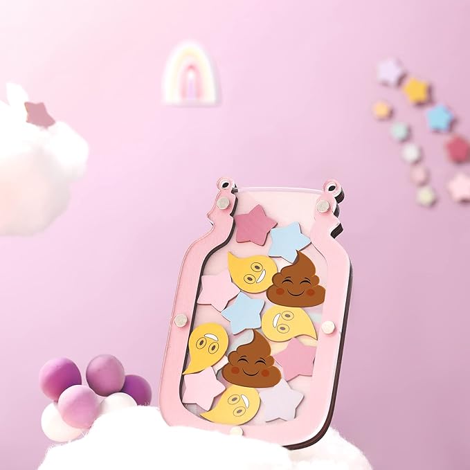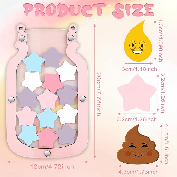 - Package Content: you will get 1 piece potty training reward jar, 20 pieces colored reward stars, 10 pieces reward poop signs, 10 pieces reward water drop signs, and a rope, you can hang the jar on the wall or place it on the table