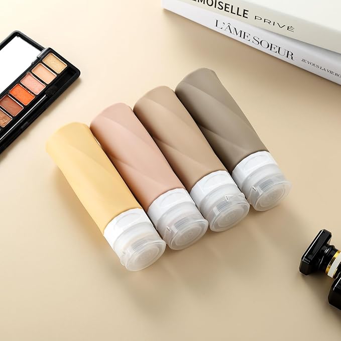 Gemice Travel Bottles for Toiletries, 3oz Tsa Approved Travel Size Containers BPA Free Leak Proof Travel Tubes Refillable Liquid Travel Accessories with Clear Toiletry Bag (4 Pack)