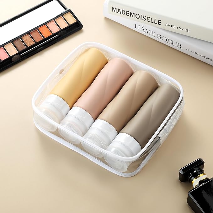 - TSA Airline Carry on Approved: Set of small bottles, perfect for shampoo, conditioner, body wash, lotion and more. Being packed with a zippered clear toiletry bag, saving space,easy to carry