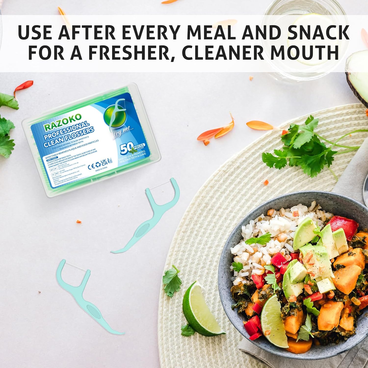 RAZOKO Dental Floss Picks Extra Strong Flosser Pick Toothpicks Fresh Mint 200 Count