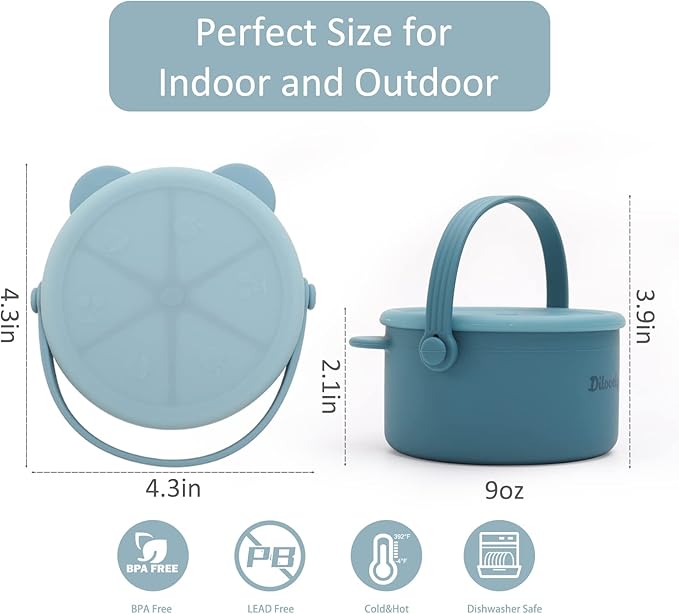 - 👶Safe for Baby: The Dilovely baby snack containers is made out of 100% food grade silicone, which is definitely safe to store food, snack or even to chew. This baby snack cups do not contain any BPA, Lead, and Phthalate.