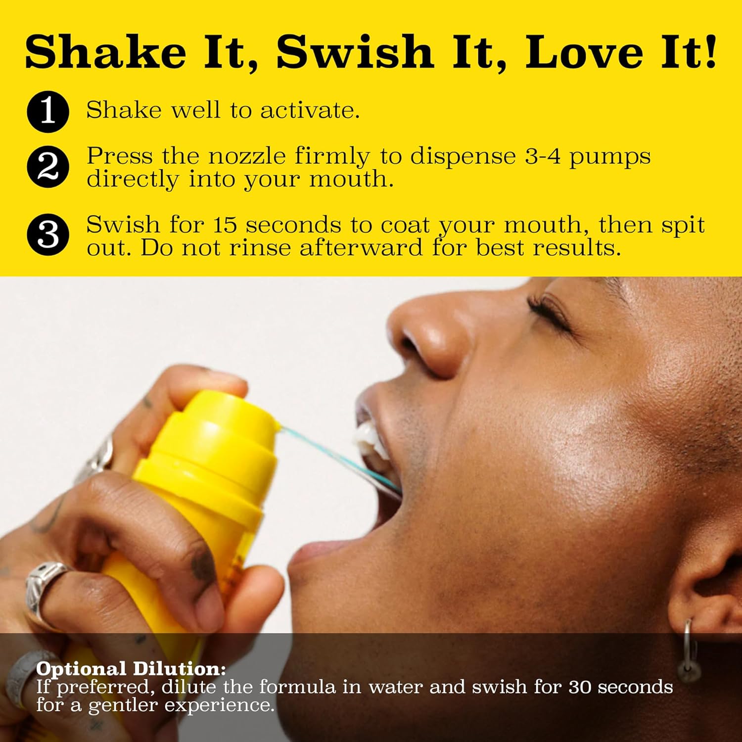 - EASY TO USE: Simply shake, dispense 3–4 pumps, swish for 15 seconds, & spit. For a gentler rinse, mix with water & swish for 30 seconds. No need to rinse after.