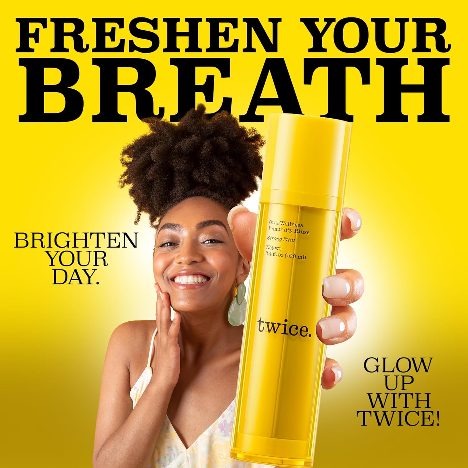 Twice Twice Oral Wellness Immunity Rinse - pH Balanced Mouthwash for Fresh Breath & Daily Oral Care, Alcohol-Free, Ultra Concentrated, Strong Mint Flavor, 3.4oz, 70 uses