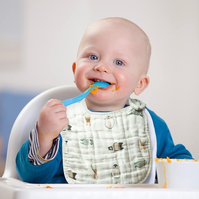 - Material and Size: These bibs are made of pure cotton muslin, the fabric is soft, comfortable, lightweight, refreshing and breathable. The size of the feeding bib is about 10.2*7.6 inches, which is suitable for infant, toddler and newborn.