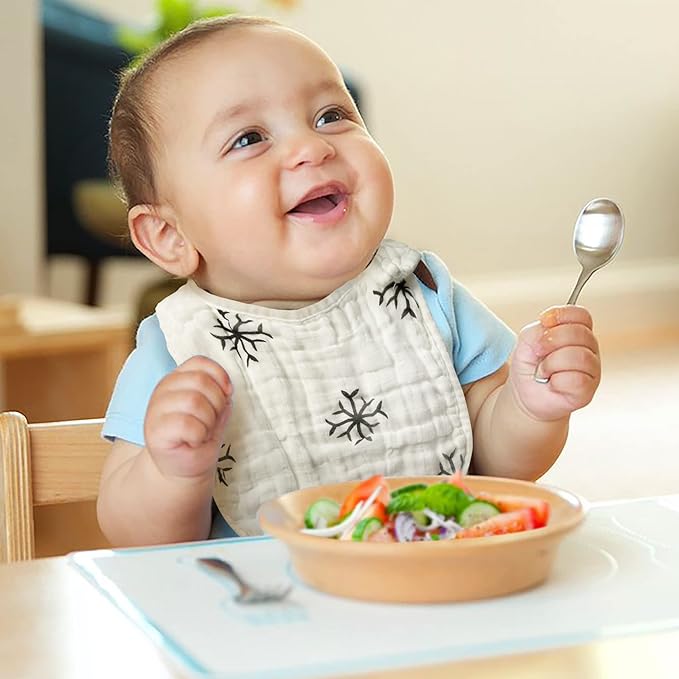 - Multi-layer Absorption: The baby bib is designed with 6 layers of soft cotton fabrics, which can effectively absorb liquids and keep baby's clothes and skin dry at all times. Avoid spills, teething and drooling.