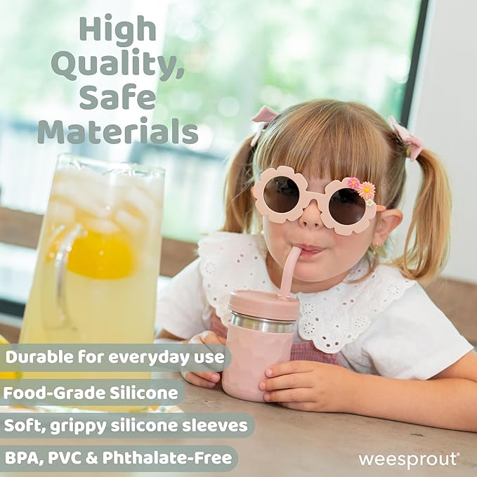 - ✅ STAINLESS STEEL KID CUPS WITH SILICONE STRAWS - Designed with speech pathologist recommendations in mind, WeeSprout cups feature soft silicone straws that are better for speech and oral development and are gentle on gums and developing teeth – and unlike straight straws, the curved design promotes proper jaw alignment by encouraging your child to drink from their cup without tilting their head down.
