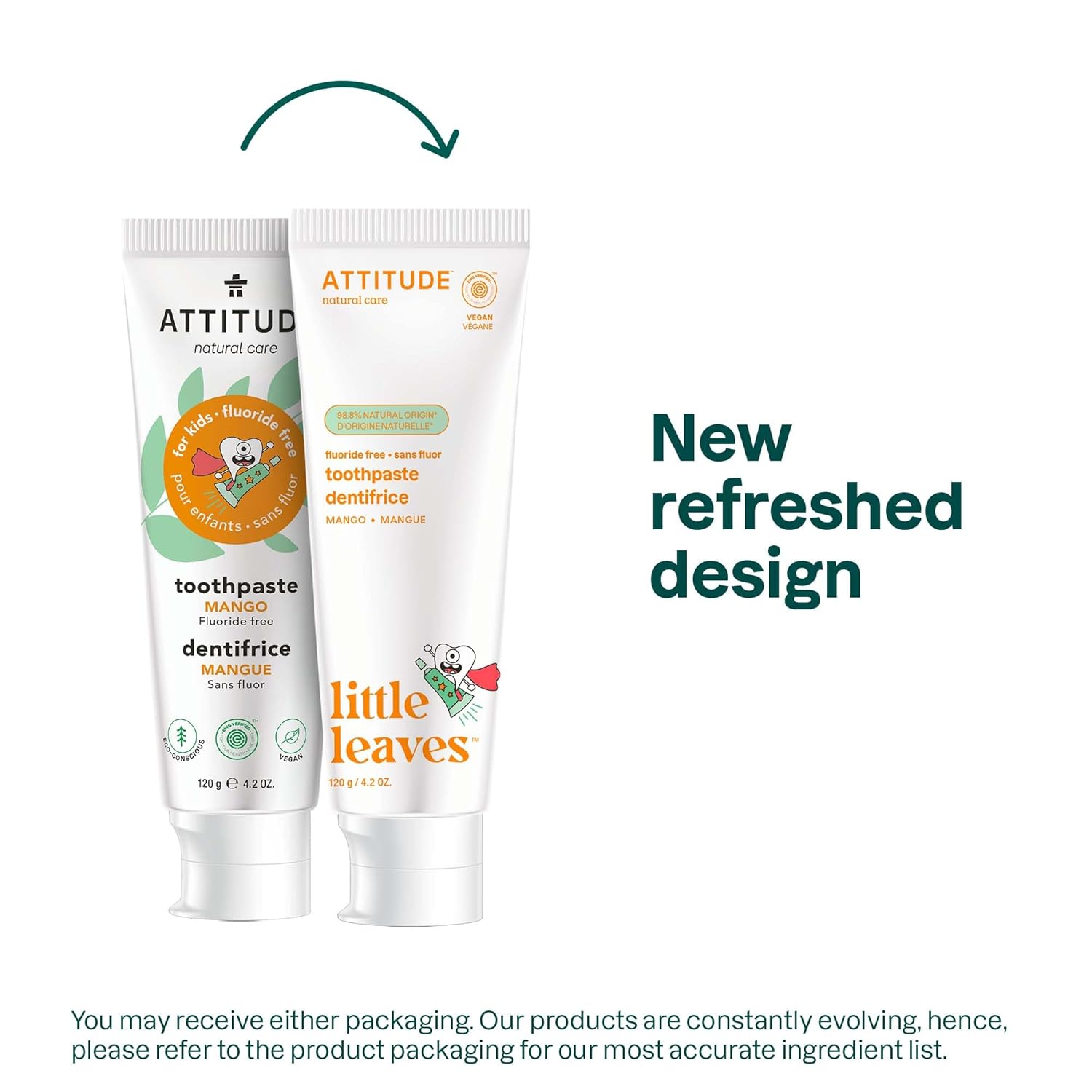 ATTITUDE Fluoride-Free Toothpaste, Plant- and Mineral-Based Ingredients, Vegan, Cruelty-Free and Sugar-Free, Mango 4.2 Oz