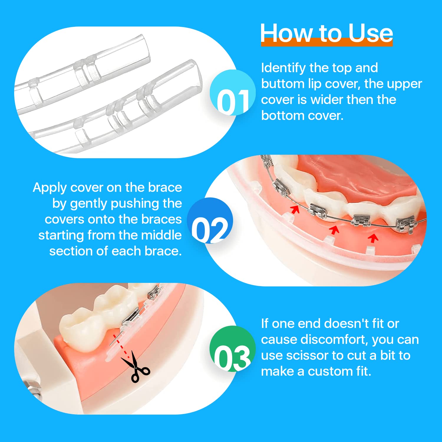 - Trim-to-Fit Comfort Covers : Universal fit clips onto most orthodontic brackets; easily trimmed to create a custom, secure fit.