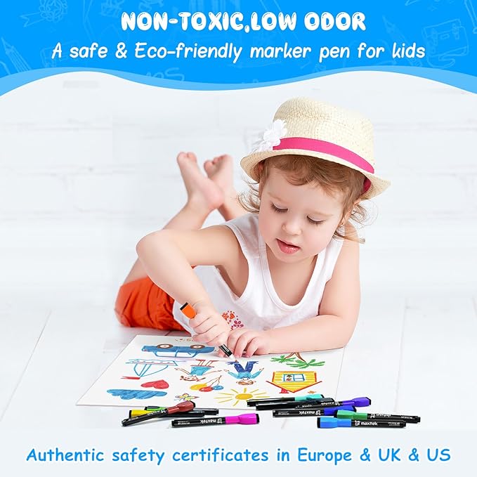 - Safe, Low-Odor Ink: Certified non-toxic whiteboard markers meet ASTM D-4236 standards, making them safe for both kids and adults.