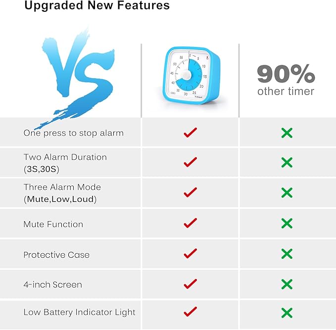 - Suitable for many occasions: It can be used as a study timer for kids, it can also be used as a kitchen timer, a task timer, meeting timer, or exercise timer