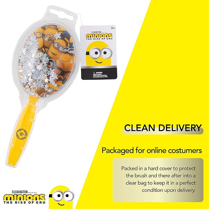Minions Kids Hair Brush with Sparkling Stars Confetti - Ages 3+