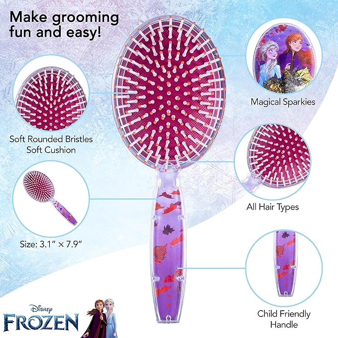 - Gentle Detangling: This Frozen Hair Brush is made with rounded end bristles to stimulate blood flow to the scalp for healthier hair. Its a detangler brush designed with wide gaps between each bristle making it less likely for hair to break with a friendly child handle.
