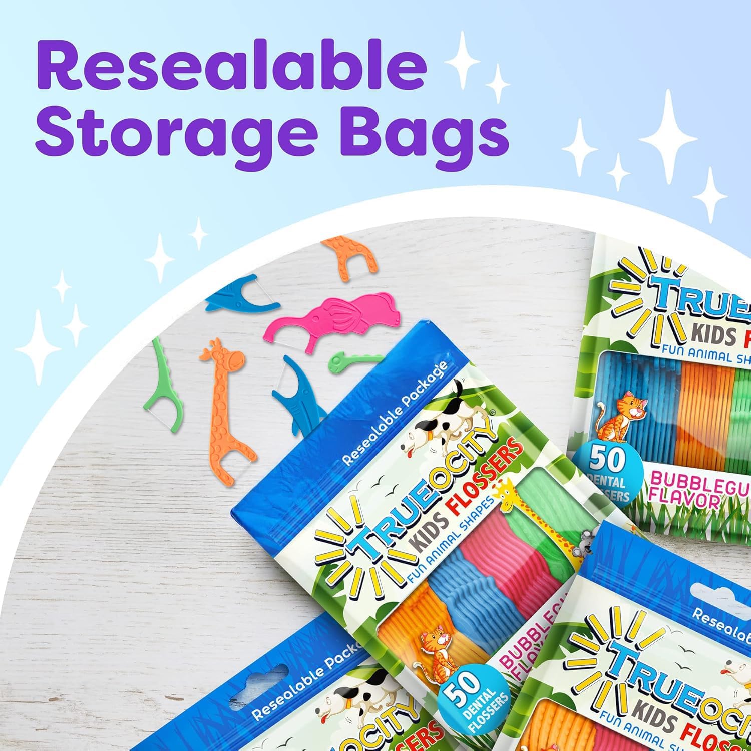 Kids Flossers 2 Pack (100 Total), Kids Floss Picks, Flossers Children, Floss Children, Animal Shapes, Glides Easy Between Teeth, Flosser Helps Prevent Tooth Decay & Gum Disease, Bubble Gum Flavored