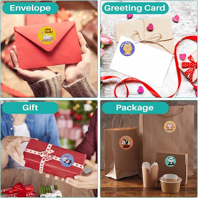 1000 pcs Animal Stickers for Kids,Cute Motivational Stickers for Kids Teachers Classroom School,16 Designs Reward Sticker (1 Inch / 2 Rolls)