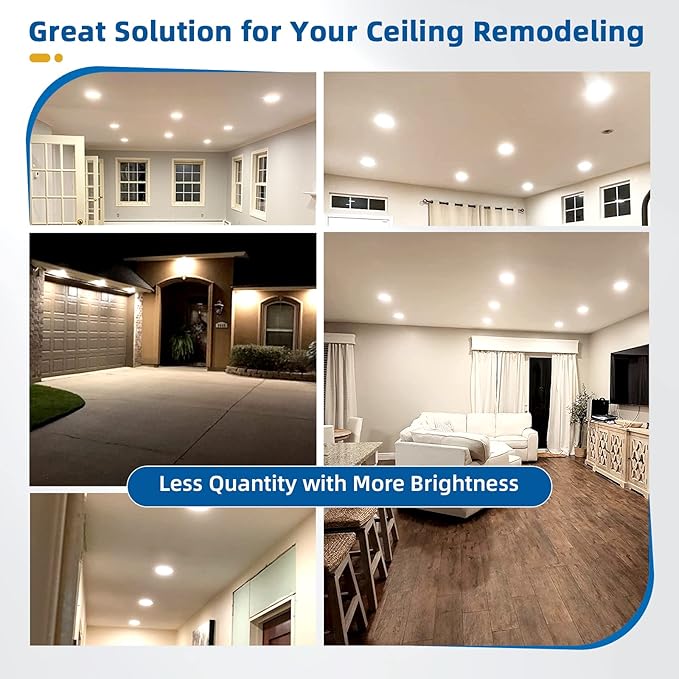 - 12W 1200lm Incomparable Brightness: These recessed lighting 4 inch is twice as bright as other 4" recessed light. Energy Star certified for efficiency. Equivalent to 150W incandescent bulbs, saving up to 92% on energy.