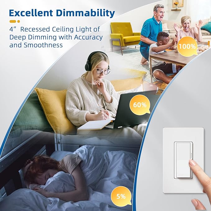- Deep Dimming with Accuracy: LTBLIGHT led recessed lighting 4 inch can be seamlessly dimmed from 5% to 100% with most dimmers. This recessed light is also compatible with regular switches (non-dimmable) for added convenience.