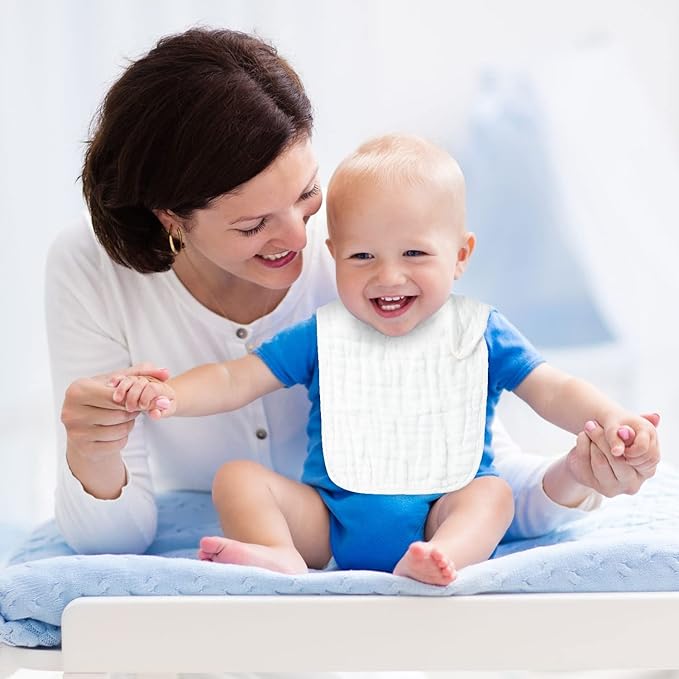 - Absorbent Bibs: Our baby bibs are designed with 6 layers of cotton gauze to effectively collect and absorb liquids, helping to keep baby's clothes and skin dry, which is suitable for infants, newborns and toddlers.