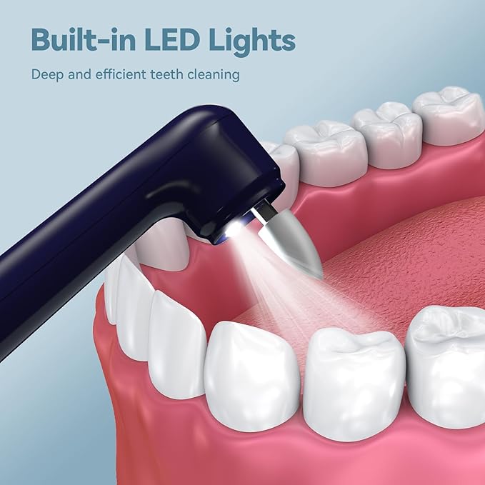 - 【USB Charging& Built in LED Light 】 Tooth polisher electric professional adopts USB charging with type-C socket, which can be applied to rechargeable treasure, car, PC charging, charging once for 2.5 hours, can be used more than 10 times. It also comes with a built-in LED light, which can help people better observe the internal situation of the mouth and ensure a more thorough cleaning effect.