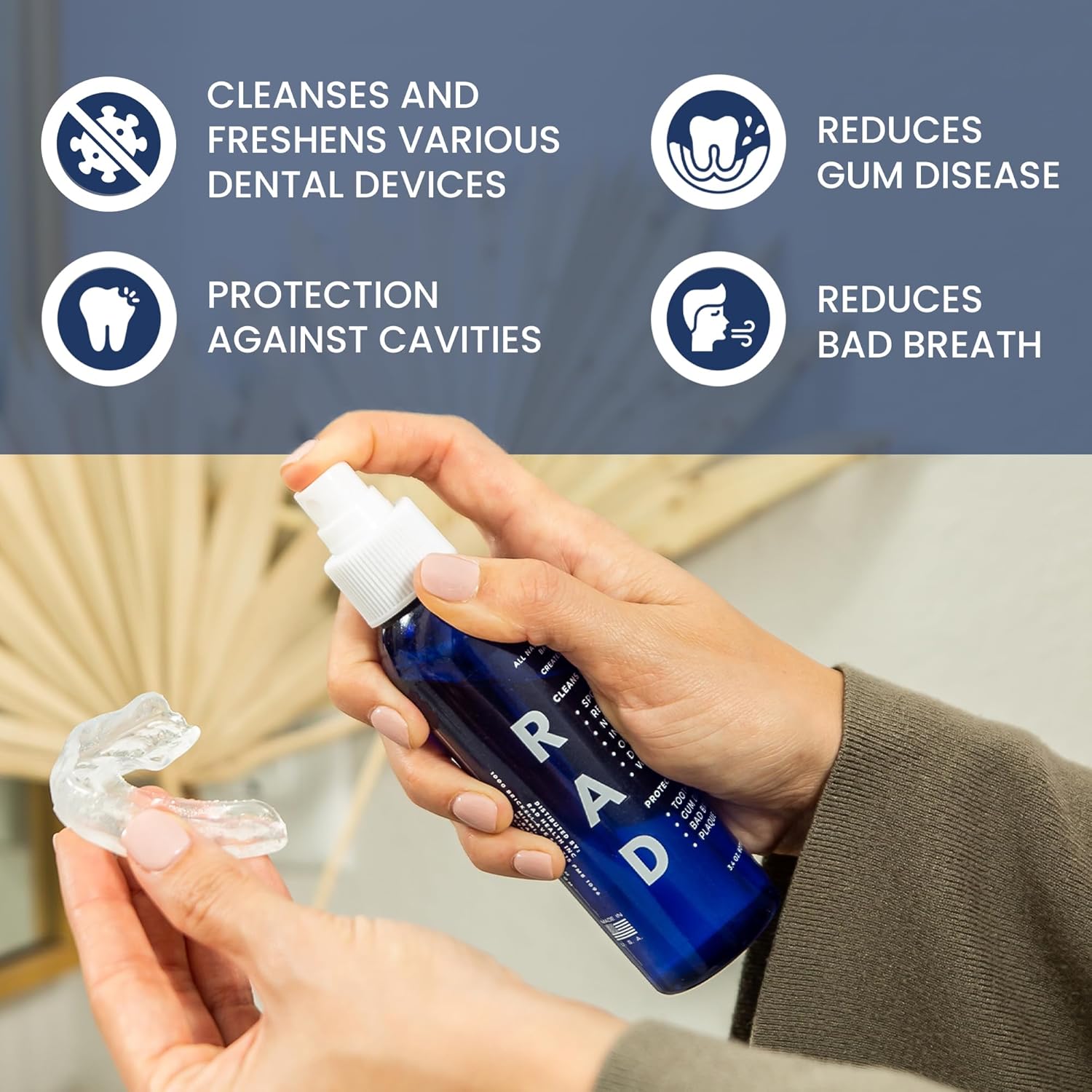 - Eliminates Junk Buildup: Cleanse oral devices thoroughly with RAD FRESH. A mouth guard cleaner used by the NFL, it’s also ideal for aligners, braces, retainers, and more. It removes plaque and nasties while deterring cavities and reducing bad breath.