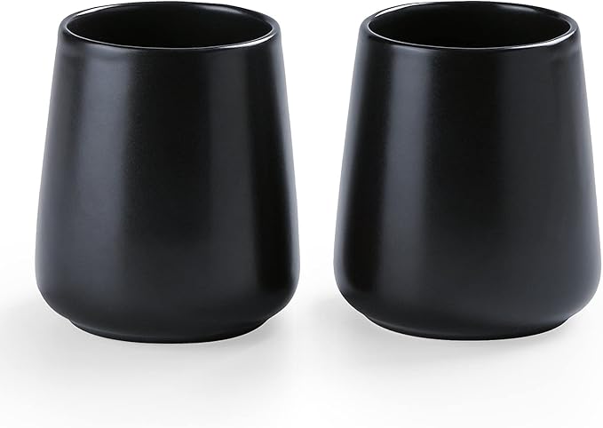 Matte Black Toothbrush Holders for Bathroom - 2Pcs Ceramic Tooth Brushing Holder Set, Toothpaste Holder, Reusable Toothbrush Mouthwash Cups, Space-Saving Design for Bathroom Countertop