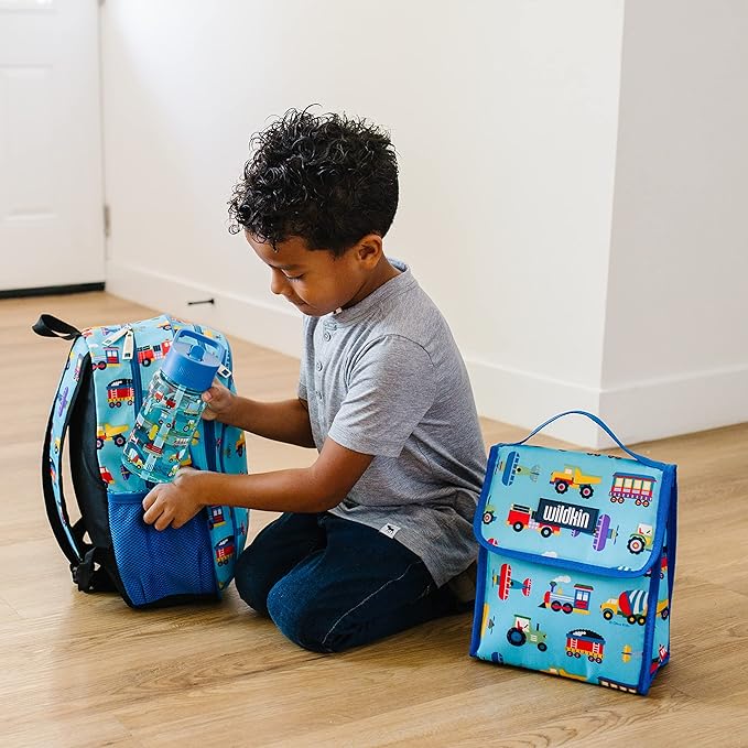 Wildkin Kids 16 Oz Water Bottle – BPA-Free Tritan, Leak-Proof Lid, Durable & Easy to Clean - Trains, Planes & Trucks