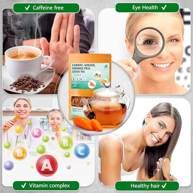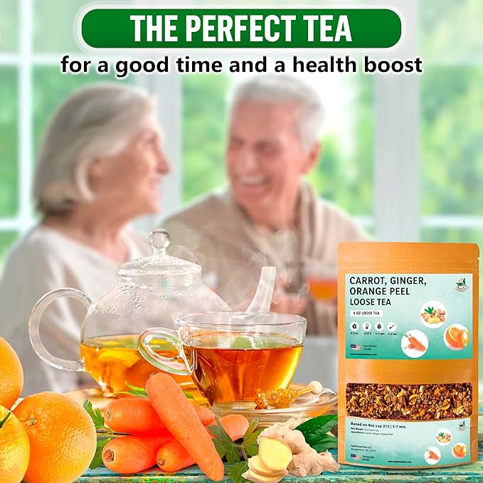 TeaDreamTea – Carrot Ginger Orange Peel - Loose Leaf Herbal Bulk Tea - Caffeine-Free - Vitamins Rich - Boost Immune System - Carrot Raw from USA - Hot and Iced Tea - 8 ounce / 227 g
